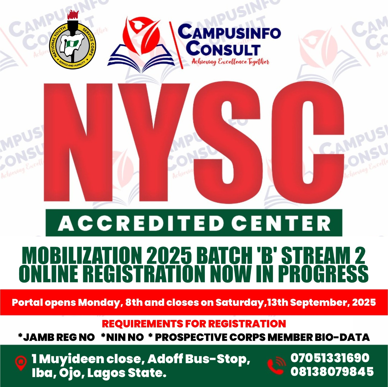 The National Youth Service Corps (NYSC) has officially activated its online registration portal for Batch B Stream II prospective corps members.