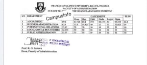 OBAFEMI AWOLOWO UNIVERSITY, ILE-IFE (OAU) RELEASES FACULTY OF ADMINISTRATION ADMISSION CUT OFF MARKS FOR THE 2024/2025 ACADEMIC SESSION
